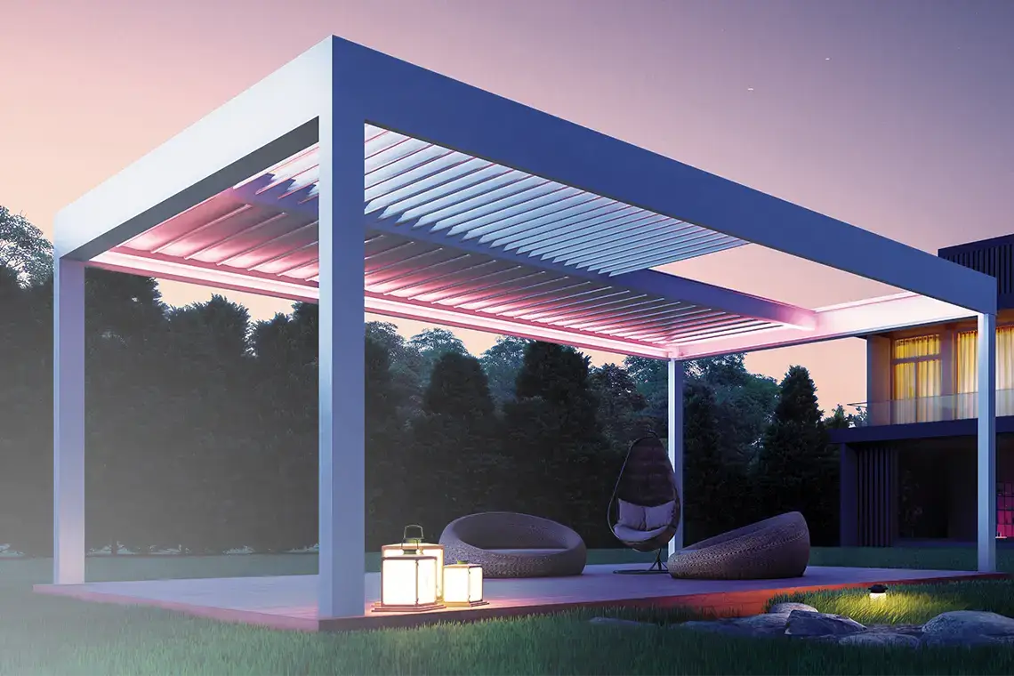 A bioclimatic pergola is a modern, advanced outdoor structure equipped with adjustable louvers that regulate sunlight, shade, and ventilation based on weather conditions, making it ideal for diverse climates. Unlike traditional pergolas, which offer fixed shading, a bioclimatic pergola allows for precise control over the outdoor environment, enhancing comfort and usability. With rotating louvers, users can manage sunlight exposure, airflow, and rain protection effortlessly. For instance, louvers can be fully closed during rainy weather to keep the area beneath dry, or partially opened on sunny days to allow for gentle light and airflow.