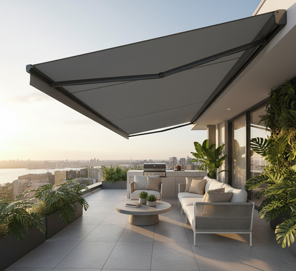 Mafsallı tente yalnızca bir gölgelik değil; aynı zamanda balkon veya terasınıza stil ve değer katan modern bir mimari ögedir.